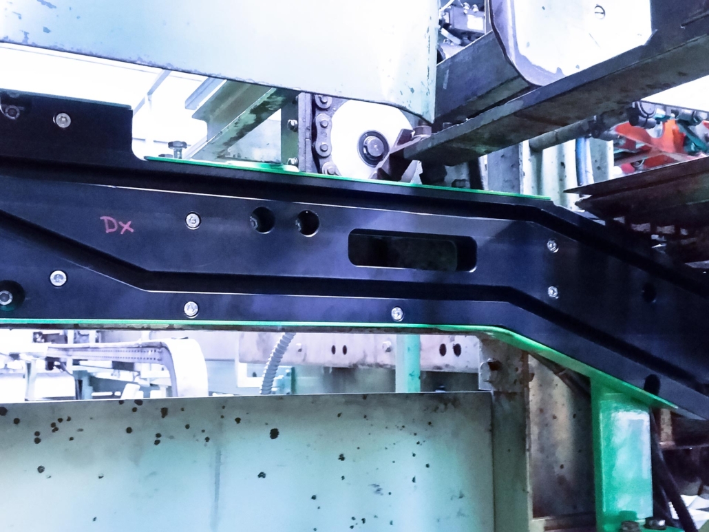 Bierre Automazioni si è così fatta pienamente apprezzare dal cliente per know-how ed esperienza in ogni fase di questo intervento turnkey, nella valutazione e scelta della mescola più opportuna per le nuove guide di scorrimento, polietilene ad alta densità PE1000, caratterizzata da alta resistenza a usura e basso coefficiente di attrito con conseguente ridotta rumorosità, nello studio cad e nella esecuzione dei profili delle nuove guide di scorrimento catene in plastica, e nella progettazione e realizzazione della nuova supportazione guide ad accessibilità agevolata.
