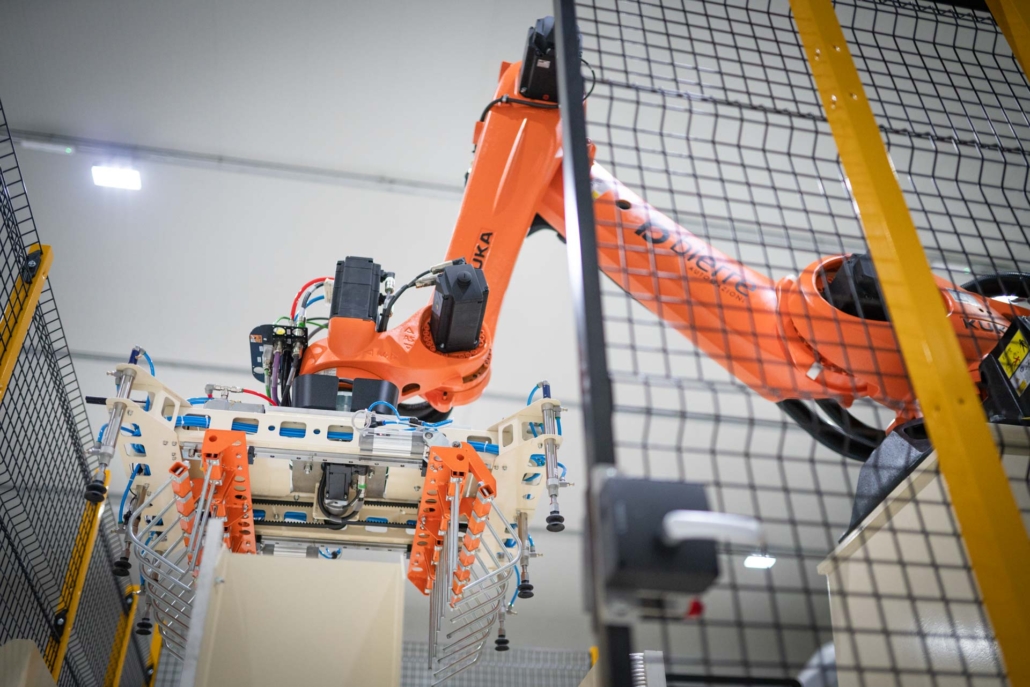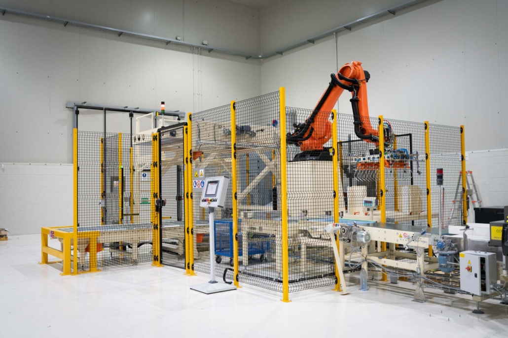 Per una nota azienda italiana produttrice di carbonato di calcio proveniente da uno dei giacimenti più puri d’Europa, Bierre ha fornito un palettizzatore robotizzato per sacchi da 25kg su palette 1000×1200 (schema a 5 sacchi/strato) o 1100×1100 (schema a 4 sacchi/strato).