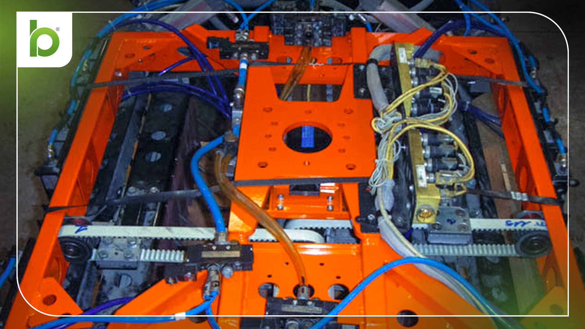 Durante un intervento di manutenzione preventiva assegnato da Basf Italia, Bierre Automazioni ha segnalato cedimenti alla struttura di sostegno della testa di presa del robot di palettizzazione di fine linea.