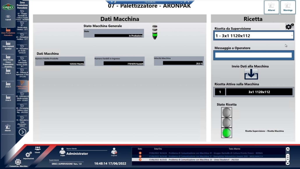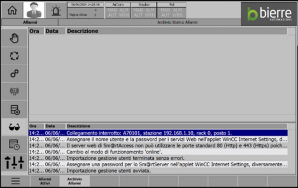 In virtù di tutte queste peculiarità, il sistema di supervisione BIERRE-APP rappresenta la soluzione ideale per ottimizzare e controllare in modo efficiente le linee di produzione. Grazie alla sua tecnologia all’avanguardia, BIERRE-APP permette di monitorare agevolmente in tempo reale ogni fase del processo, offrendo una visione completa e dettagliata dell’intera linea produttiva con la massima precisione e affidabilità.